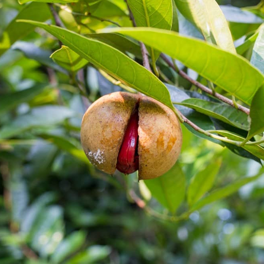 - Nutmeg trees may reach a height of about 60ft tall. Grafted varieties usually tend to grow straight and therefore you can maintain smaller spacing between each plant. It has a warm and comforting taste and aroma with nutty, earthy and slightly sweet, but not sugary flavour.
